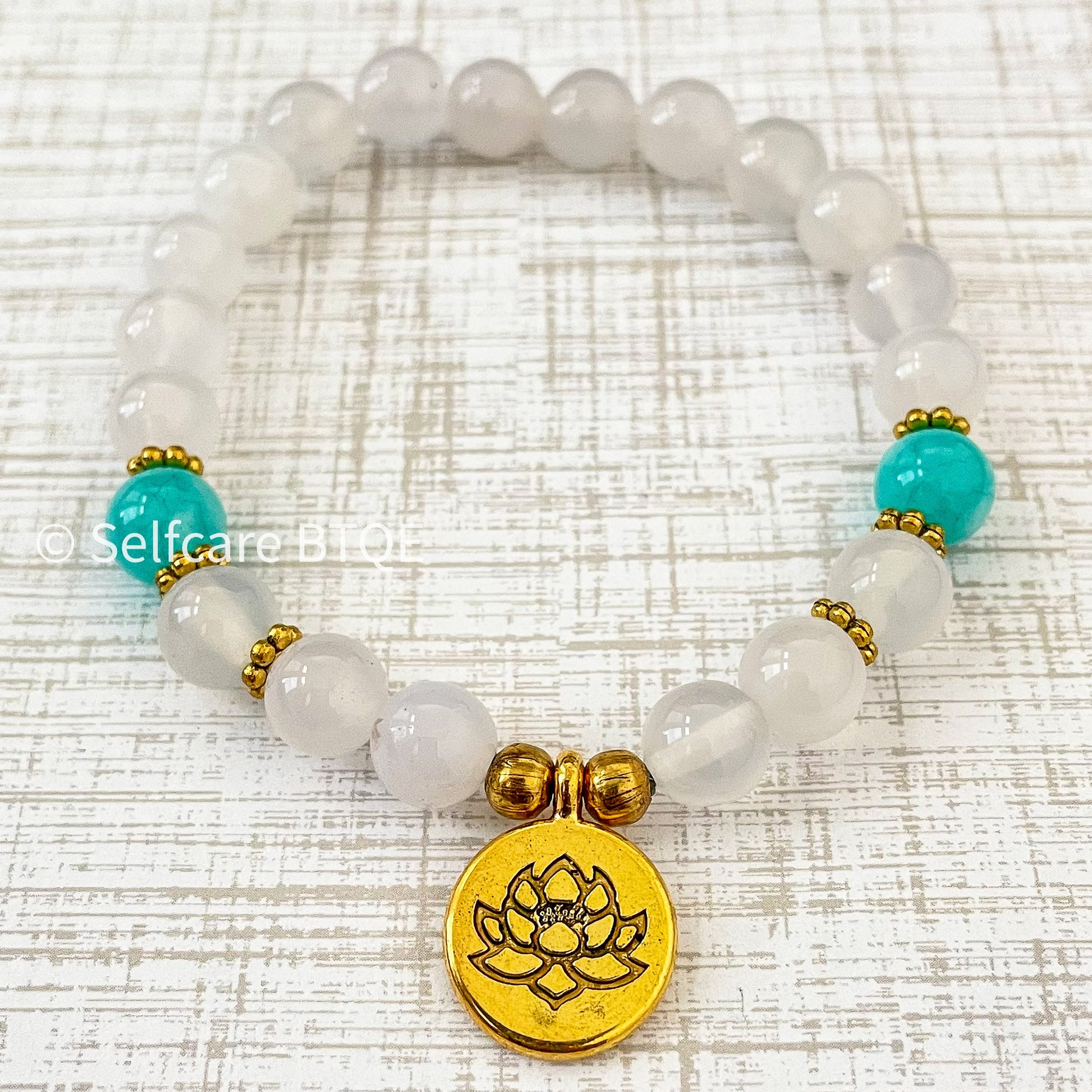 This bracelet stars a lotus flower charm and fits wrist sizes 5-9”. The Rose Quartz stones each has a refractive index of 1.54 -155. Our jewelry collection is free from nickel and lead materials.