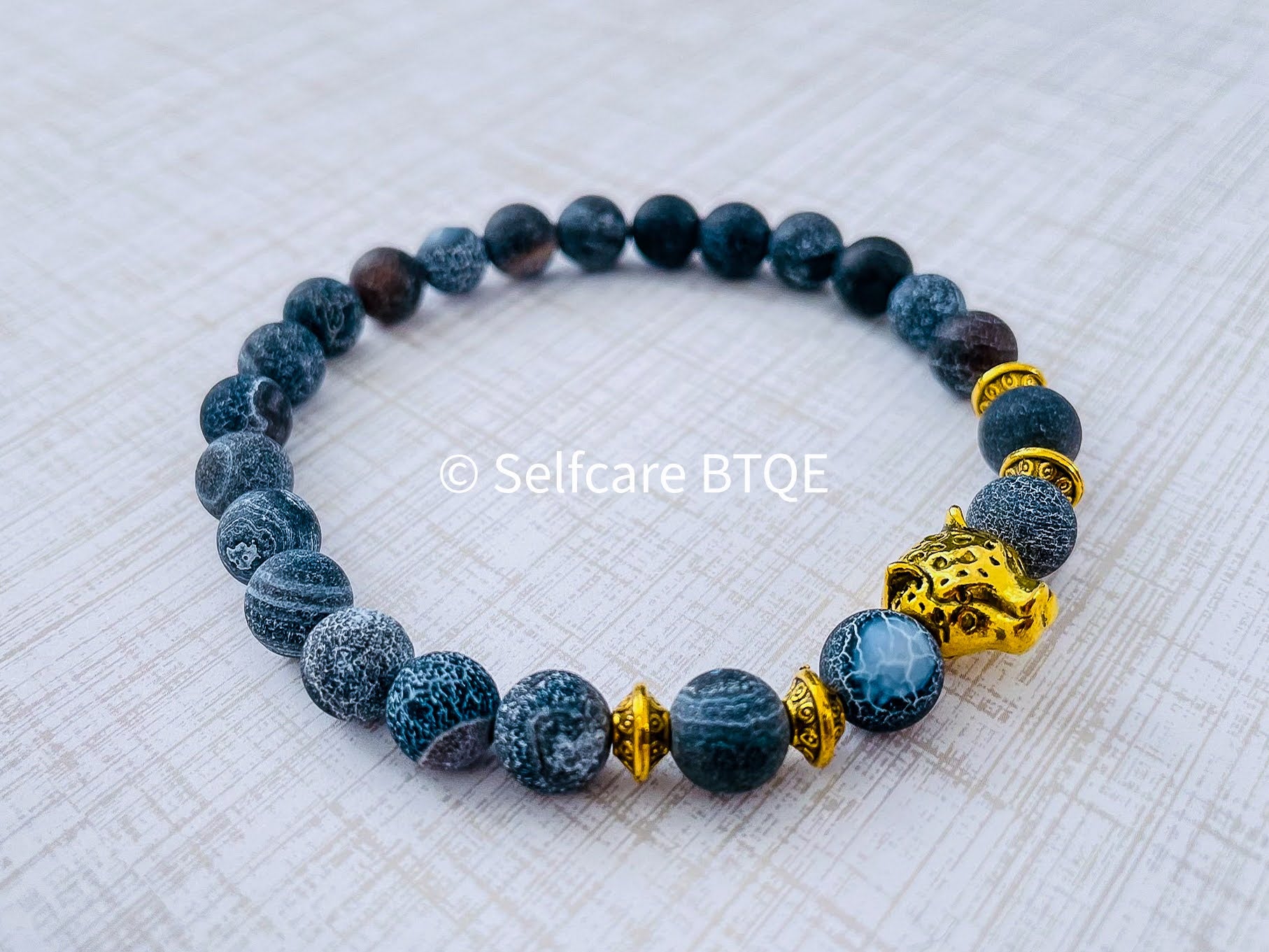 Tibetan Leopard with Dark Blue Weathered Agate Stones | 8mm
