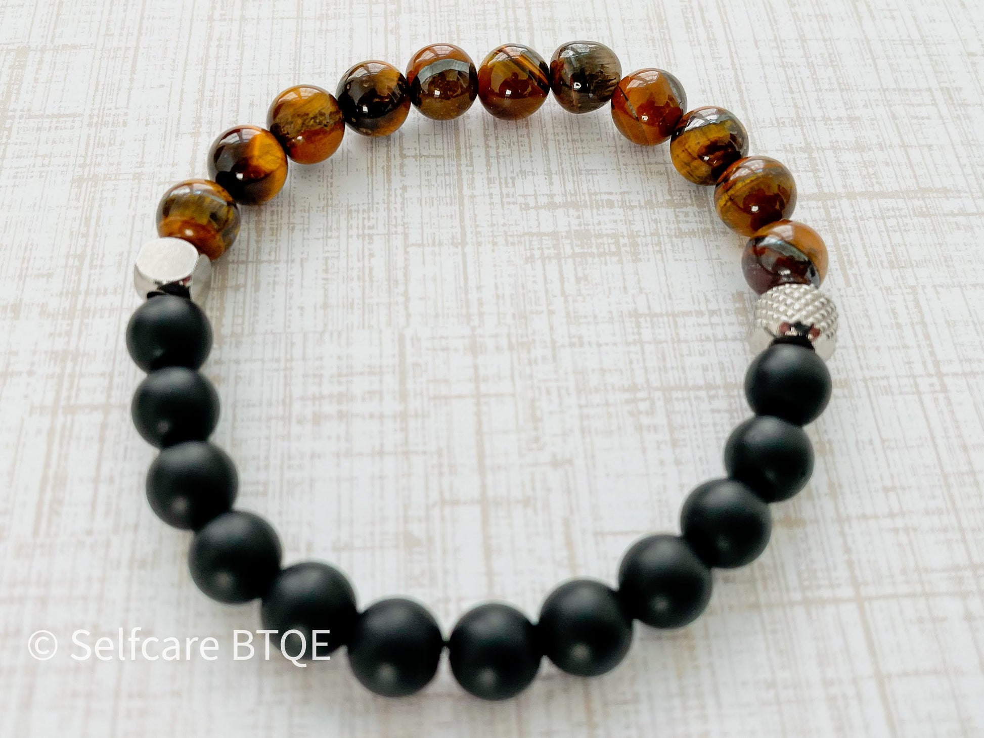 Tiger’s Eye and Frosted Black Agate Stone Bracelet |8mm